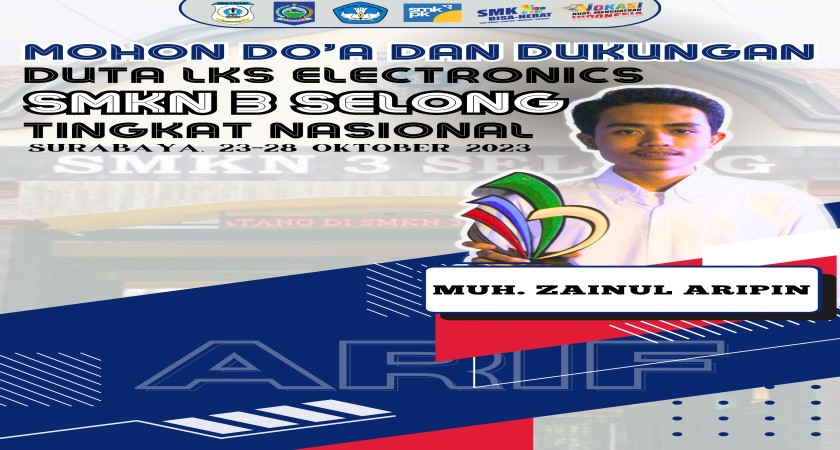 SMK Negeri 3 Selong kembali mengukir prestasi di ajang LKS Nasional ke-31 tahun 2023 yang diselenggarakan di Surabaya 23 sampai 28 Oktober 2023. Sebagai perwakilan dari Provinsi NTB sebagai Juara 1 LKS Tingkat Provinsi Bidang Electronics, Muh. Zainul Aripin atau biasa dipanggil ARIF meraih peringkat ke 10 dengan predikat Medallion for Excellent.