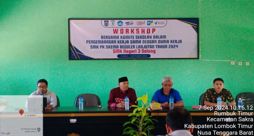 Lombok Timur - Pada hari Sabtu, 7 September 2024, SMKN 3 Selong mengadakan "Workshop Bersama Komite Dalam Pengembangan Kerja Sama dengan Industri" yang berlangsung di ruang Aula SMKN 3 Selong. Kegiatan ini diikuti oleh sekitar 30 orang guru, dengan tujuan mempererat hubungan antara SMK dan dunia industri dalam rangka mempersiapkan siswa agar lebih siap kerja.